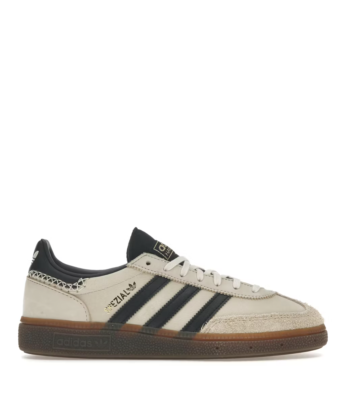 Handball Spezial designades ursprungligen som en inomhussko för handboll, men är nu en livsstilssneaker med rötter i retrostilen. Överdelen är tillverkad av premiumläder i Wonder White med svarta detaljer, som exempelvis de tre ränderna på sidopanelen, hälfliken, kragen och plösen. Till skillnad från andra modeller har "Wonder White Black"-versionen en T-formad tåbox i mjuk mocka i färgen Magic Beige. Märkesdetaljer inkluderar metalliskt guldfärgad text ‘SPEZIAL’ på sidopanelen samt en Wonder White-trefoil på hälfliken.