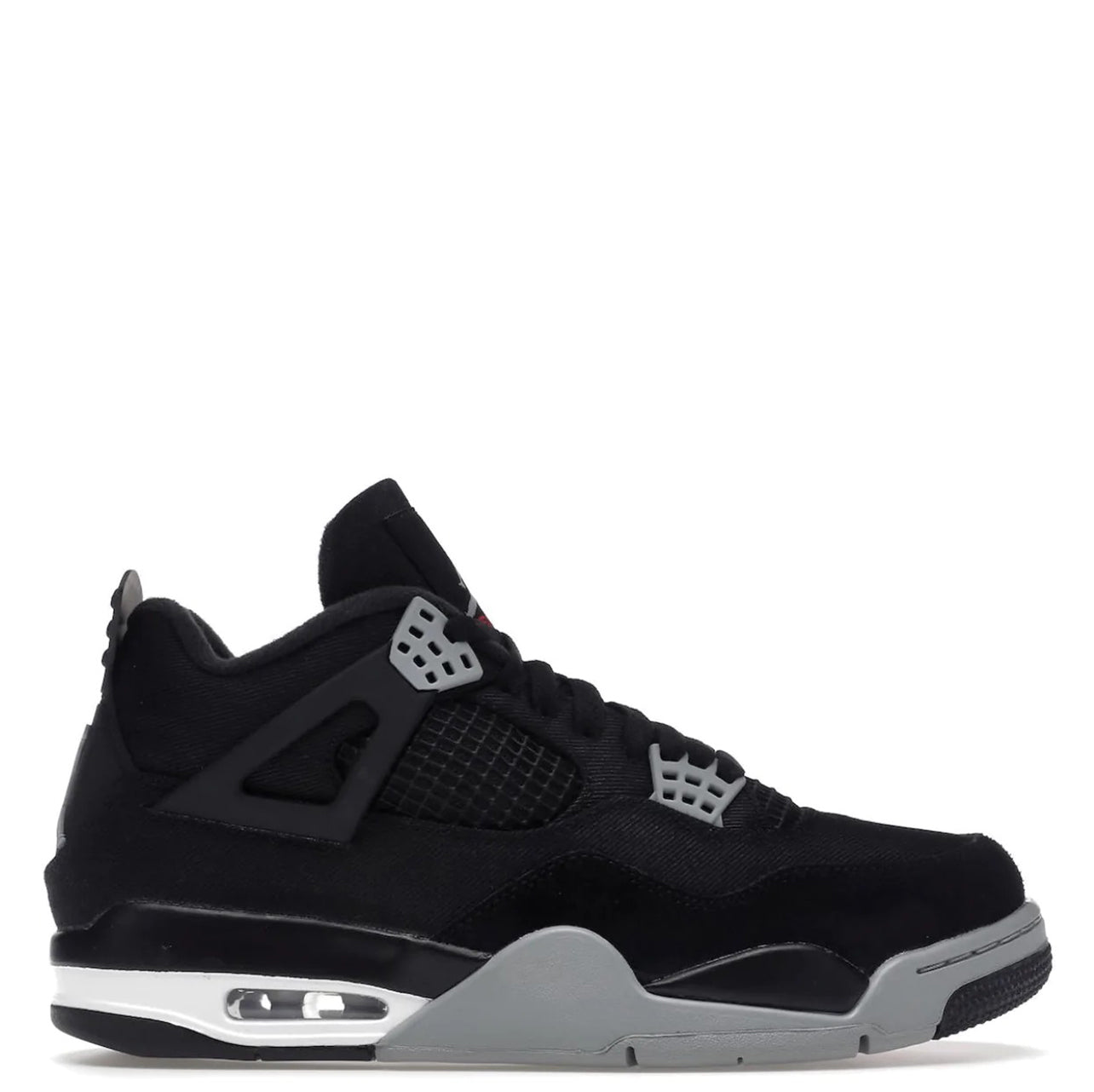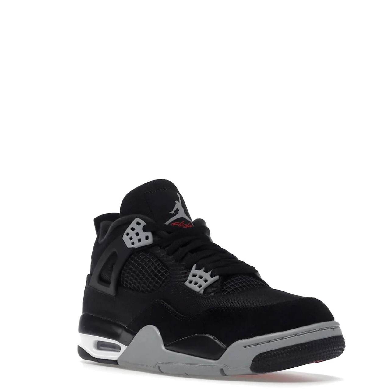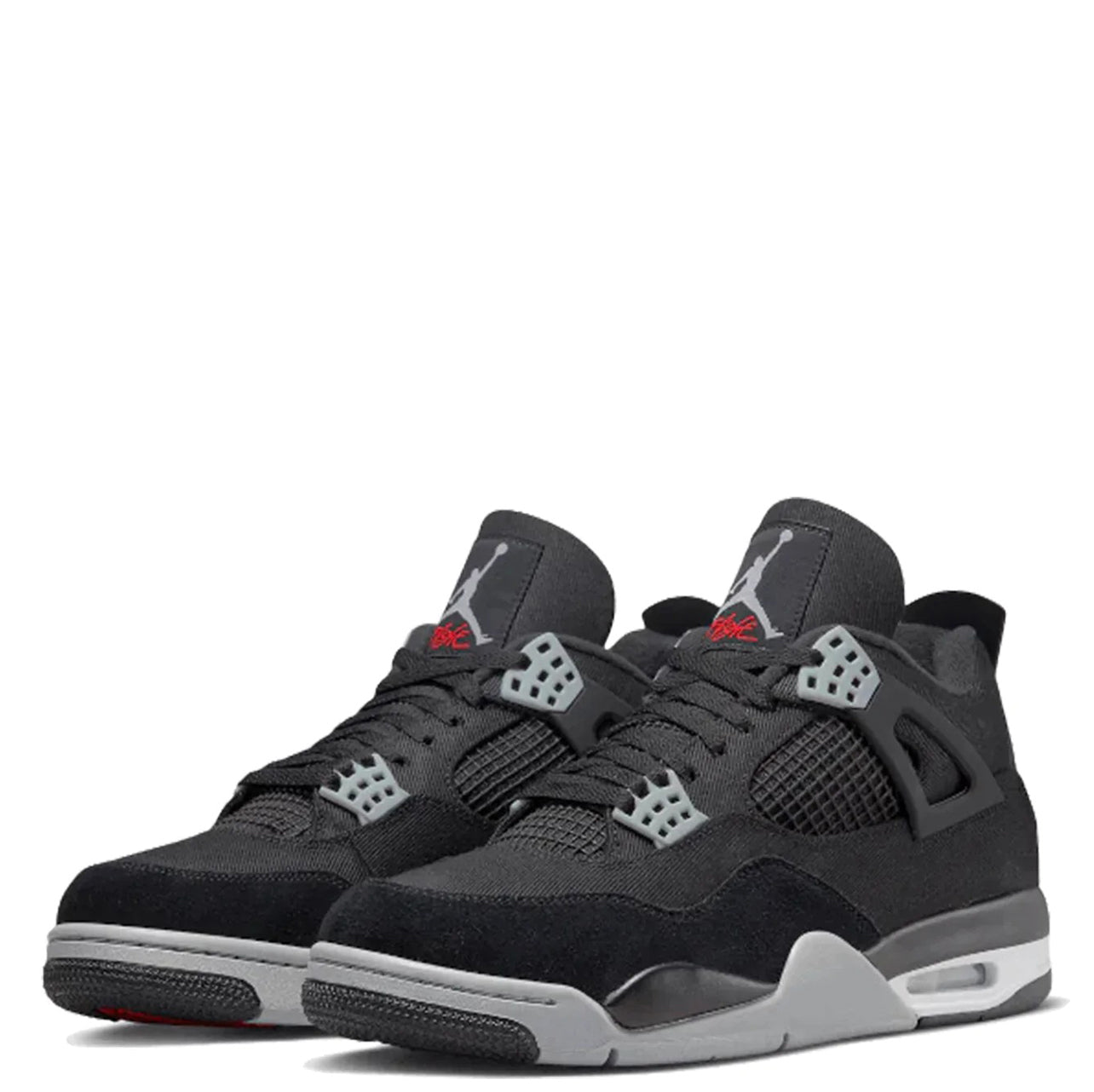 Air Jordan 4 sort lærred har en sort lærredsbase ledsaget af en tonal ruskinds-stænkskærm. Symbolsk for denne model er TPU-buret tilgængeligt i en sort nuance, ligesom fanerne. Grå øjer, matchende del af mellemsålen og hæl- og pløs-branding tilføjer kontrast til dette par. Et strejf af hvidt omkring Air Sole-enheden tilføjer det sidste touch til denne uudgivne iteration.