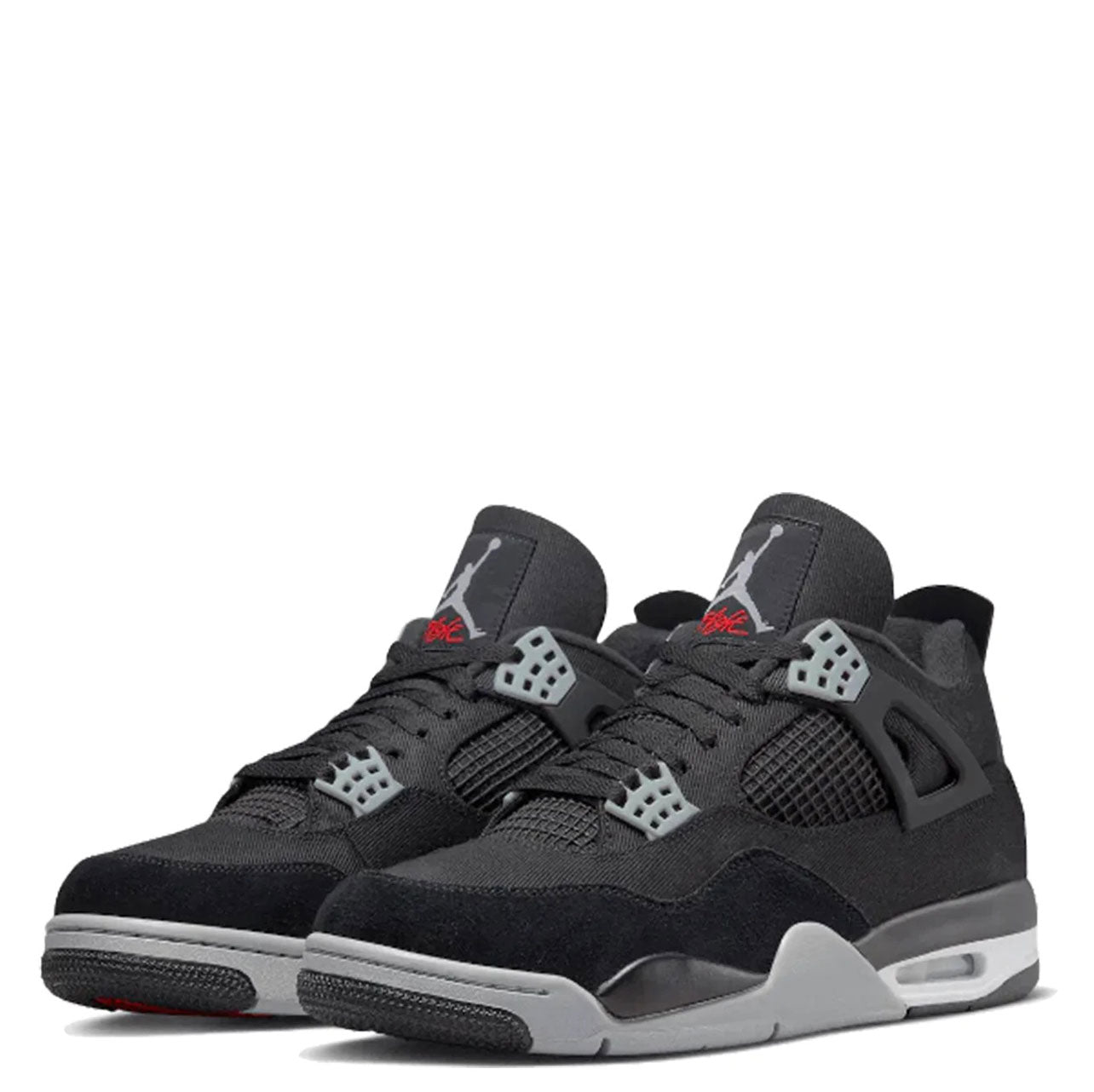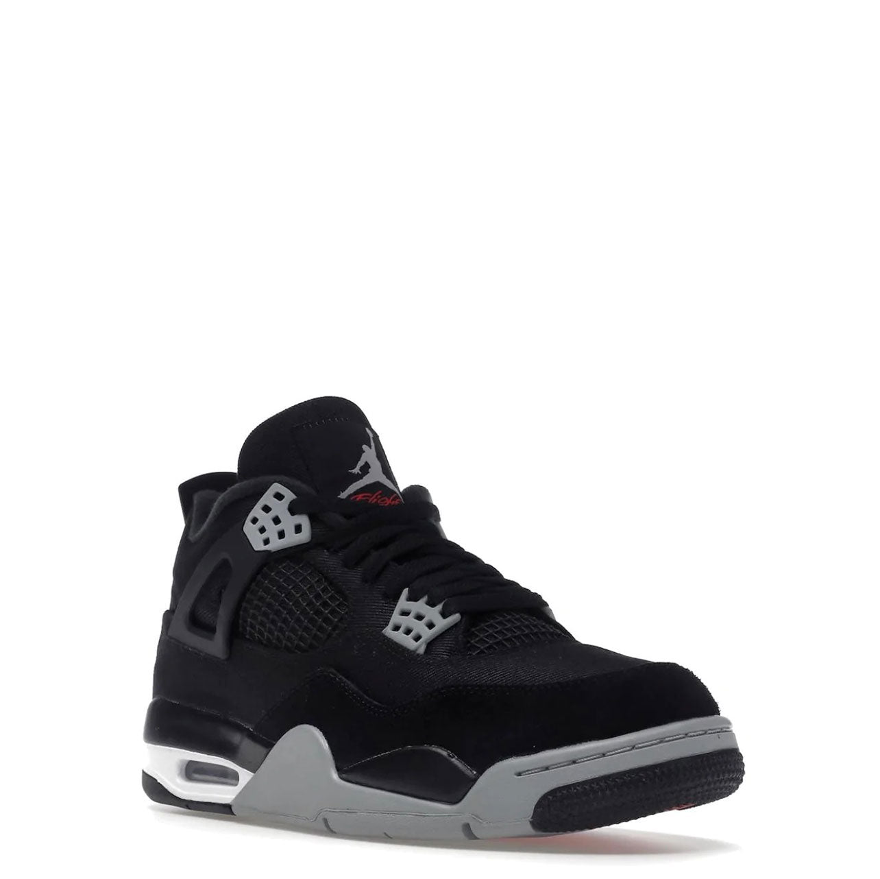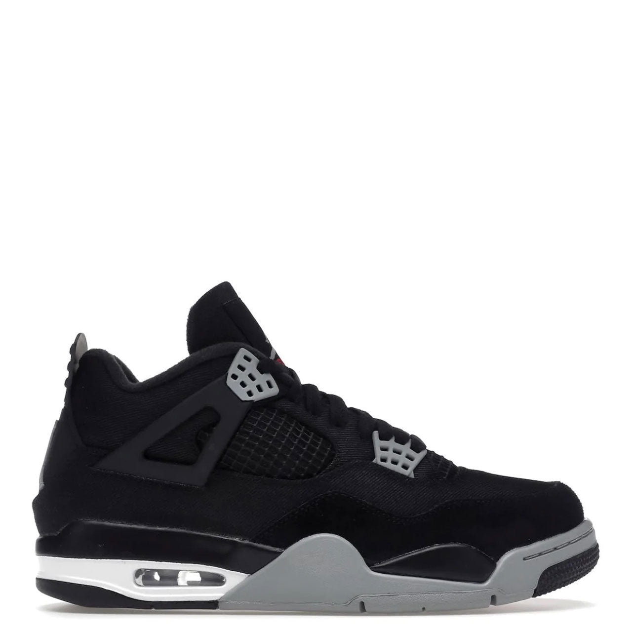 Air Jordan 4 Black Canvas har en sort lærredsbase ledsaget af en tonal ruskinds-stænkskærm. Symbolsk for denne model er TPU-buret tilgængeligt i en sort nuance, ligesom fanerne. Grå øjer, matchende del af mellemsålen og hæl- og pløs-branding tilføjer kontrast til dette par. Et strejf af hvidt omkring Air Sole-enheden tilføjer det sidste touch til denne uudgivne iteration.