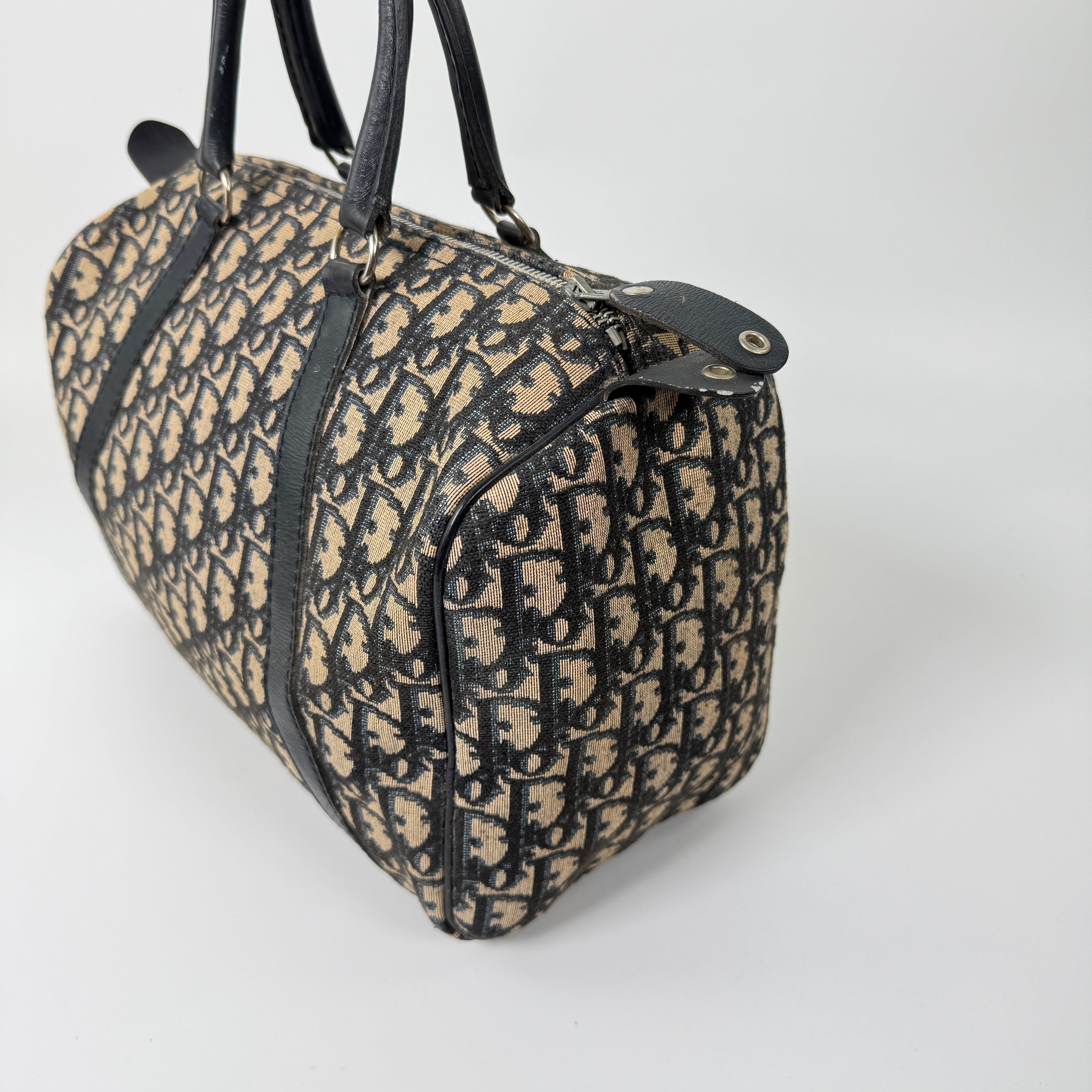Väskan är i gott vintage-skick med synliga tecken på användning. Det finns en märkbar fläck/slitage på ena sidan av väskan (se bild), vilket bör beaktas innan köp.